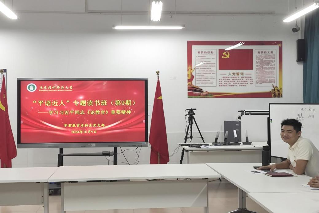 为深入学习贯彻党的二十届三中全会精神和习近平总书记在全国教育大会上的重要讲话精神,学前教育本科生党支部于2024年10月9日召开学习贯彻全国教育大会精神和习近平总书记《论教育》专题会议。会议由党支部书记吴晨阳老师主持。