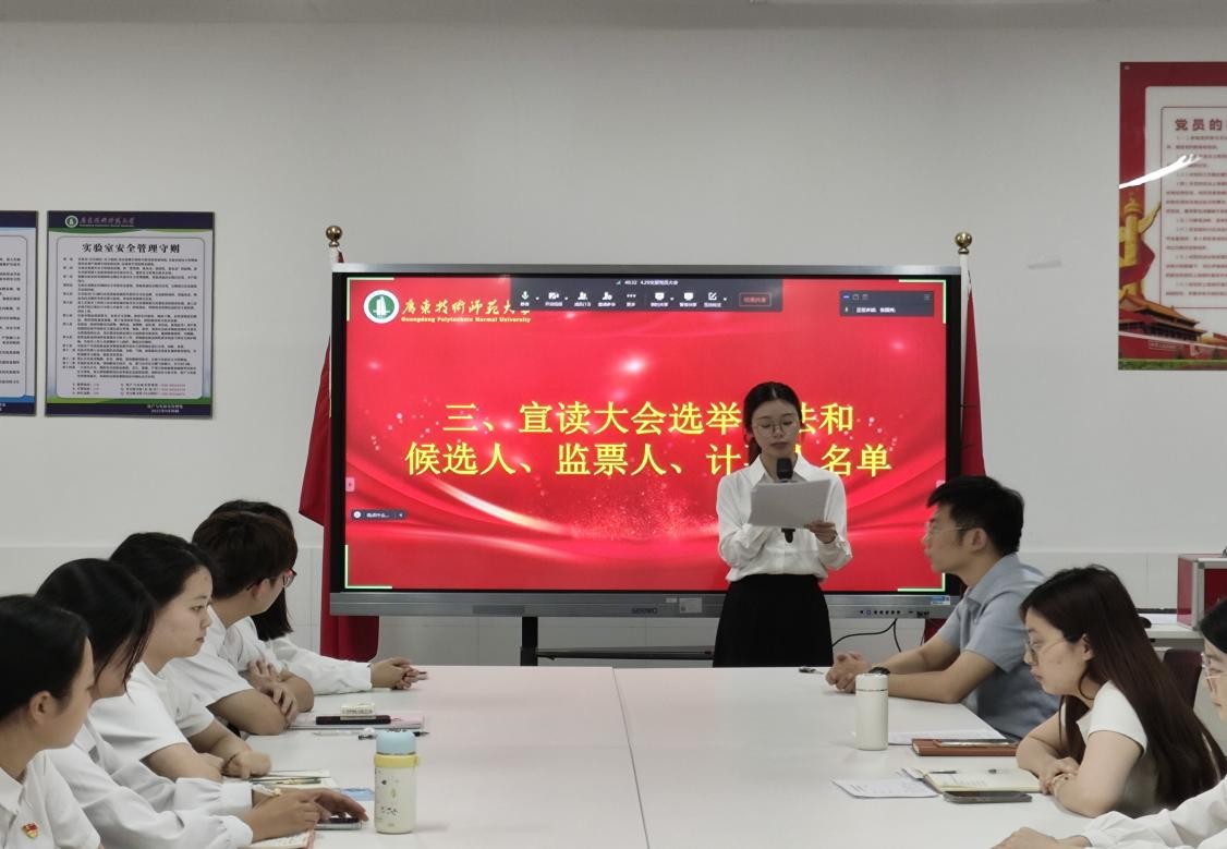 第三项议程是宣读大会选举办法和候选人、监票人、计票人名单。本次选举采用无记名投票和等额选举的方式,候选人是袁炜(教工)同志,监票人由王洽同志担任,计票人由林纯同志和余嘉欣同志担任。这一环节确保了选举工作的公正、公平、公开,让每一位党员都能清晰了解选举流程和相关人员。