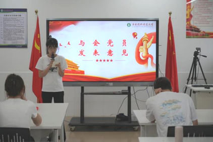 汇报完成后,进行会议第四项议程,两位发展对象的入党介绍人张海桐、王壮同志分别介绍了两名同志的有关情况,并发表了个人意见。在发言中,介绍人肯定了她们在培养考察期间的良好表现,均认为她们已具备成为预备党员的条件。