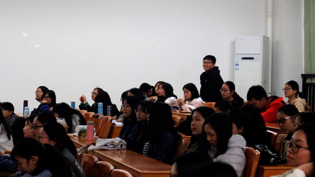 在同学们更好地了解了综合测评以及“广师之星”的重要意义后,四位候选人旋即按顺序上场进行展示答辩。在仅有的四分钟时间内,候选人们向在场同学展示了自身日常学习、工作和生活中努力勤奋的优秀一面,他们在身兼多职,成绩优异,同时还获取许多奖项,无一落下,令在座的同学们佩服不已。同时他们也都分享了对个人发展的一些经验与建议。在现场的提问环节中,同学们积极求教,畅所欲言,展现出他们向优秀榜样学习的热切之心。