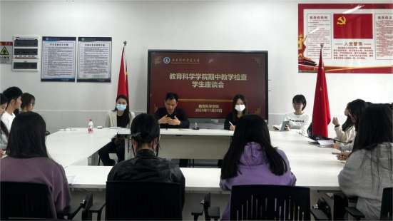 为加强教学过程监控与管理,确保学校教学的高质量运行,根据学校期中教学检查工作的总体安排,2023年11月30日中午,TapTap点点副院长谢德新、教务员李思慧、吴嘉怡、张晓颖,组织学院各年级的学习委员和信息委员作为各班代表在白云校区第二实训楼502会议室开展2023-2024学年度第一学期期中教学检查学生座谈会。