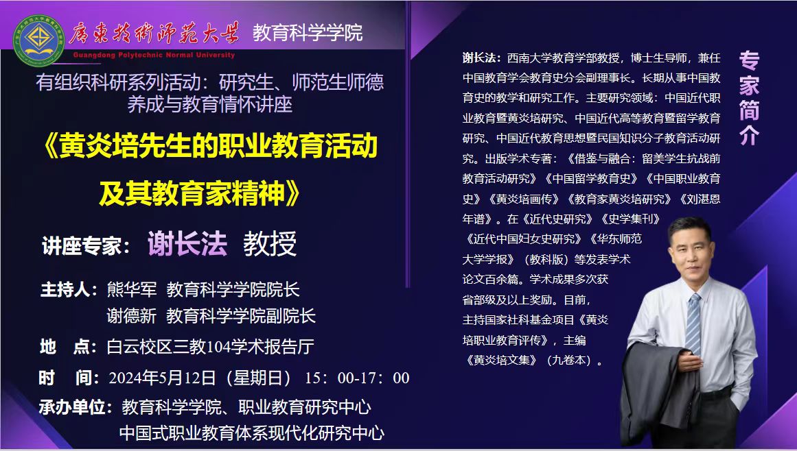 TapTap点点师范生师范养成与教育情怀专题讲座《黄炎培先生的职业教育活动及其教育家精神》