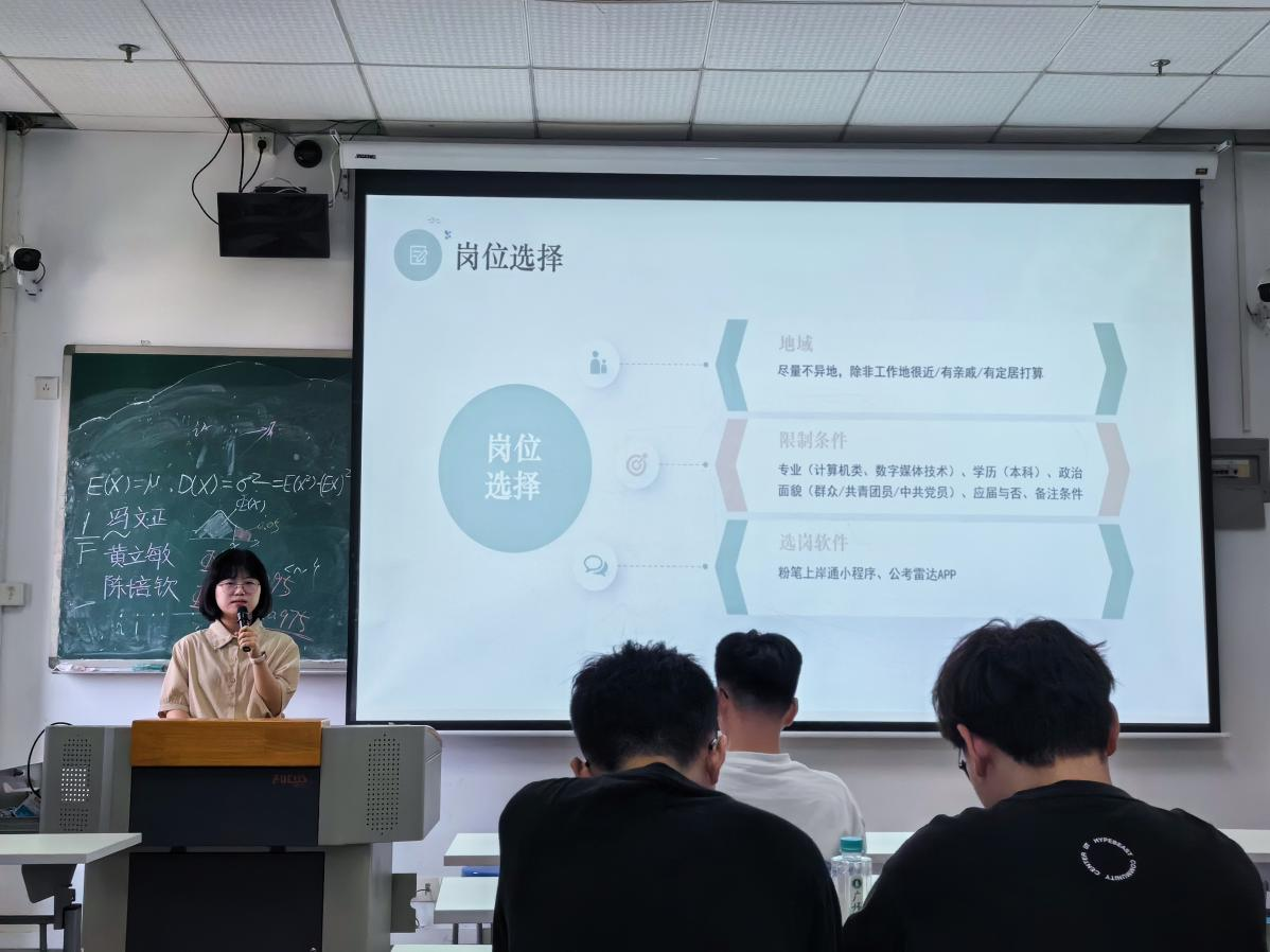 随后,已经在考编、考公道路上获得成功的师兄师姐们从考试政策解读、如何选择岗位、备考资料选择、复习计划制定到心态调整、如何应对面试,全面剖析了考编、考公的各个环节。他们强调,成功并非偶然,而是长期努力与正确方法的结晶。同时,他们也分享了面对挫折时的坚持与自我激励之道,鼓励在座的每位同学,无论遇到多大困难,都要保持乐观态度,坚定信念,勇往直前。每一位演讲者用实际行动诠释了“授人以渔”的真谛,使得在场的每位听众都能汲取到适合自己的营养,为自己的未来规划增添了一份信心与底气。