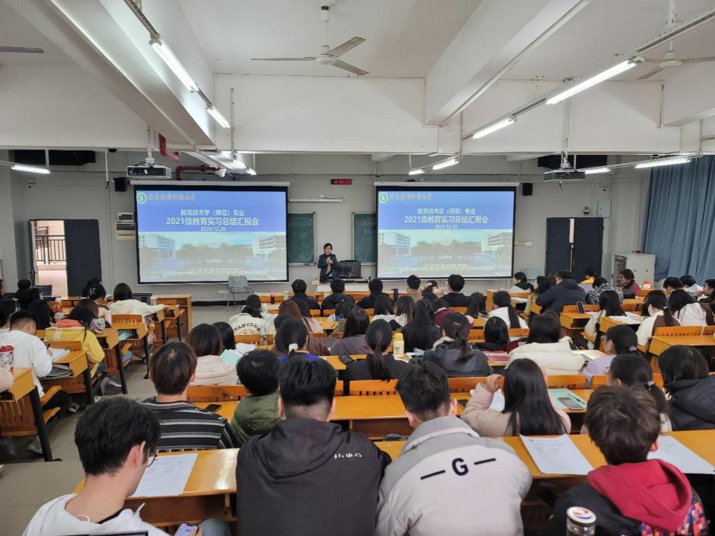 为帮助2021级教育技术学专业学生回顾总结教育实习收获,推进教育研习与毕业设计(论文)工作进展,促进专业发展,2024年12月26日,TapTap点点教育技术学系在白云校区三教309召开2021级教育实习总结汇报会、教育研习推进大会与毕业设计(论文)推进大会,教育技术学专业骨干教师赵玉、周元春、梁乐明、黄石华、宗晓艳、王孝金、王朋利、李元明、蒋凡、黄芳明以及教育技术学专业2021级和2022级全体学生参加了会议。