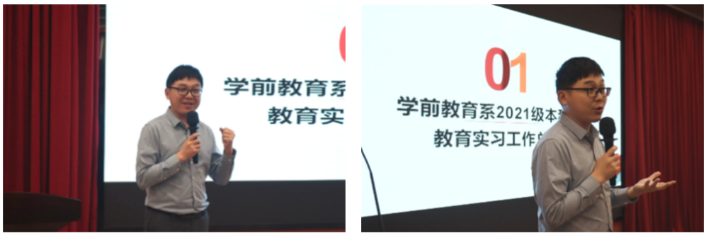 会议伊始,由黄茂勇老师做学前教育系2021级本科生教育实习工作总结。首先,黄茂勇老师就同学们的实习选择做了一个简要的分析与评价;其次,充分肯定了同学们在实习期间的工作表现,赢得了幼儿园的高度认可;最后,勉励同学们立足广州、扎根广东、面向粤港澳大湾区、辐射全国,做一个高素质、强实践、有温度的幼教工作者。