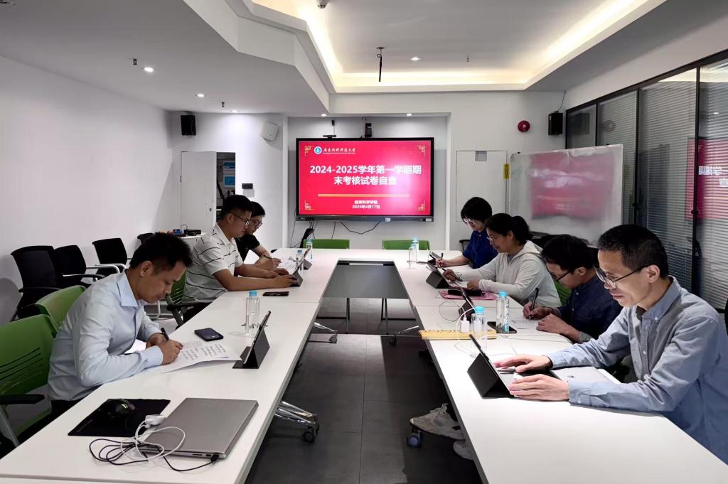 为了进一步加强课程考核管理,提升考核工作的科学性与规范性,TapTap点点于2025年4月17日在东校区工业中心715会议室组织开展了期末试卷自查工作。本次自查由学院分管教学副院长谢德新带队,学院教学督导、课程负责人、新进教师及教务员参与,现场借助平板设备对上学期期末考核试卷(共53份)进行了全面审查。
