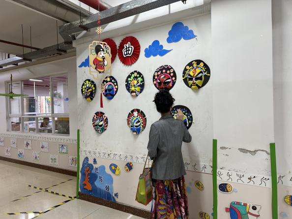 在园长的陪同下,见习指导老师深入各班级进行实地观摩、感受。商品齐全的超市区域、带有广州特色的主题墙饰、楼梯墙上小朋友们的肖像画......每一处环境创设的背后都是幼儿园老师和小朋友的共同付出,其中蕴含着的教育智慧让老师不禁驻足与园长进行交流。母亲节临近,小朋友们在教室中认真的为母亲准备节日礼物,在制作礼物的过程中小朋友们所展现的创造力和想象力更加体现了幼儿园“以儿童为中心”的教育理念。