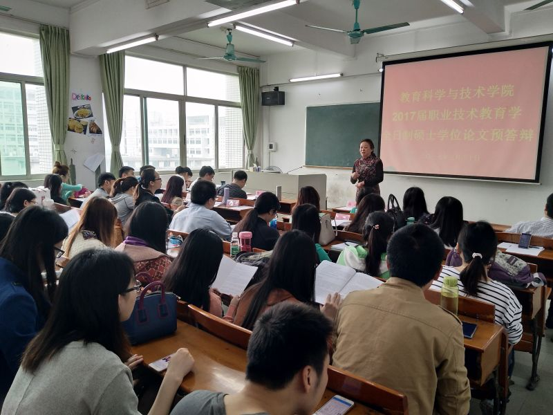 3月30日上午,教育科学与技术学院2017届全日制硕士学位论文预答辩在校本部一教8楼举行。预答辩委员由陶红院长、任平副院长、陈丽君副院长、赵玉教授、许晓安和李宁副教授、覃江梅和刘海兰博士八位校内专家学者组成,2017届18名毕业生参加本次预答辩,2015级、2016级60余名全日制研究生全程观摩。