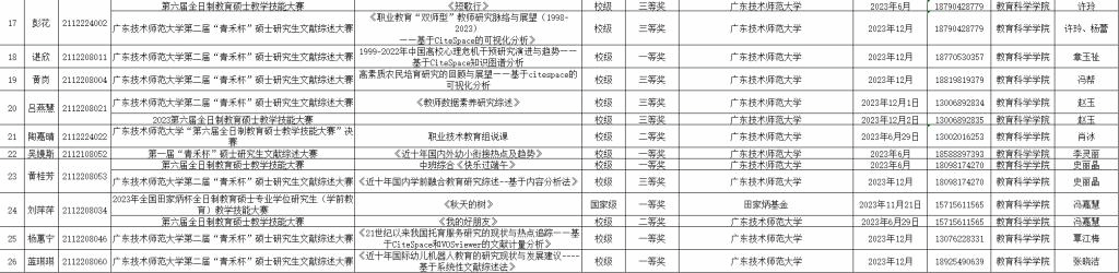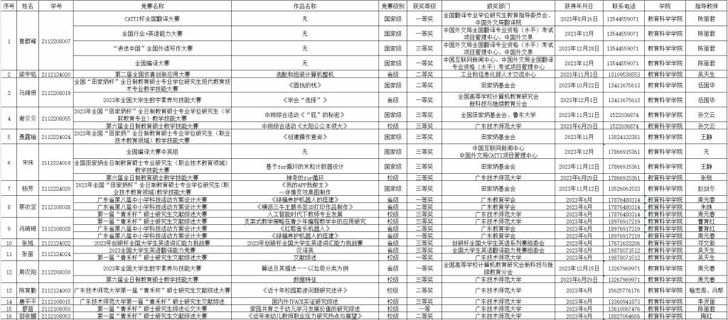 根据TapTap,TapTap点点《关于开展2023年TapTap,TapTap点点研究生优秀科技竞赛成果奖评选工作的通知》(广师大研〔2024〕8号)文件要求及《TapTap,TapTap点点研究生学科竞赛资助和奖励办法》(广师大〔2022〕372号)相关规定。经研究生自主申报,导师推荐,教育科学学院组织评审,现将评审结果予公示三天。