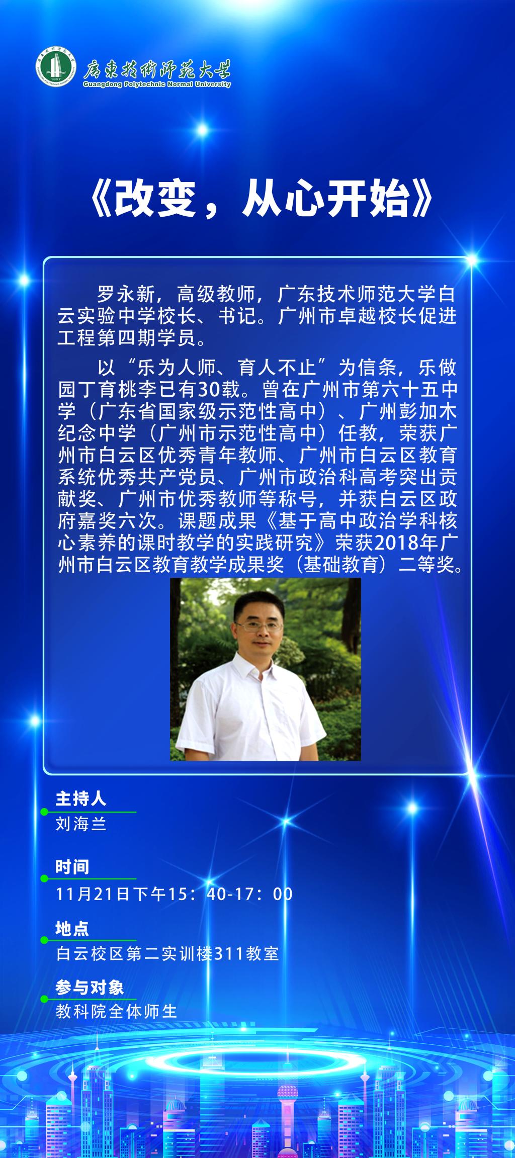【11.21 讲座预告】 改变,从心开始