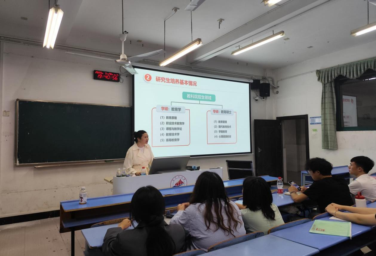井冈山大学教育学院党委书记周光培勉励同学们根据自身合理选择报考院校;最后,教育学院副院长梁尔铭教授介绍了井冈山大学本科专业设置情况,并就自身发展经验鼓励同学们尽早进行学业规划,积极备考。随后,双方就学科发展、专业建设、人才培养、实验室建设等情况进行了介绍和交流。双方表示,此次调研交流活动很有成效和意义,希望接下来加强沟通联系,促进共同发展。